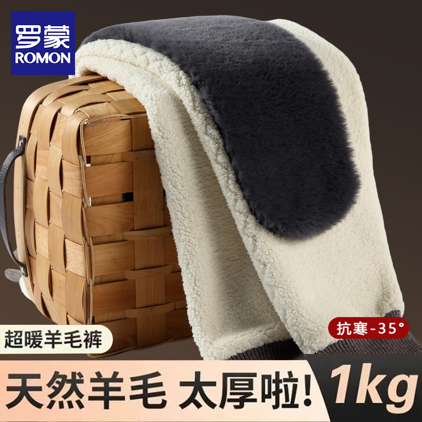 罗蒙冬季羊毛裤男加厚加绒羊羔绒保暖裤打底羊毛裤女士中老年棉裤