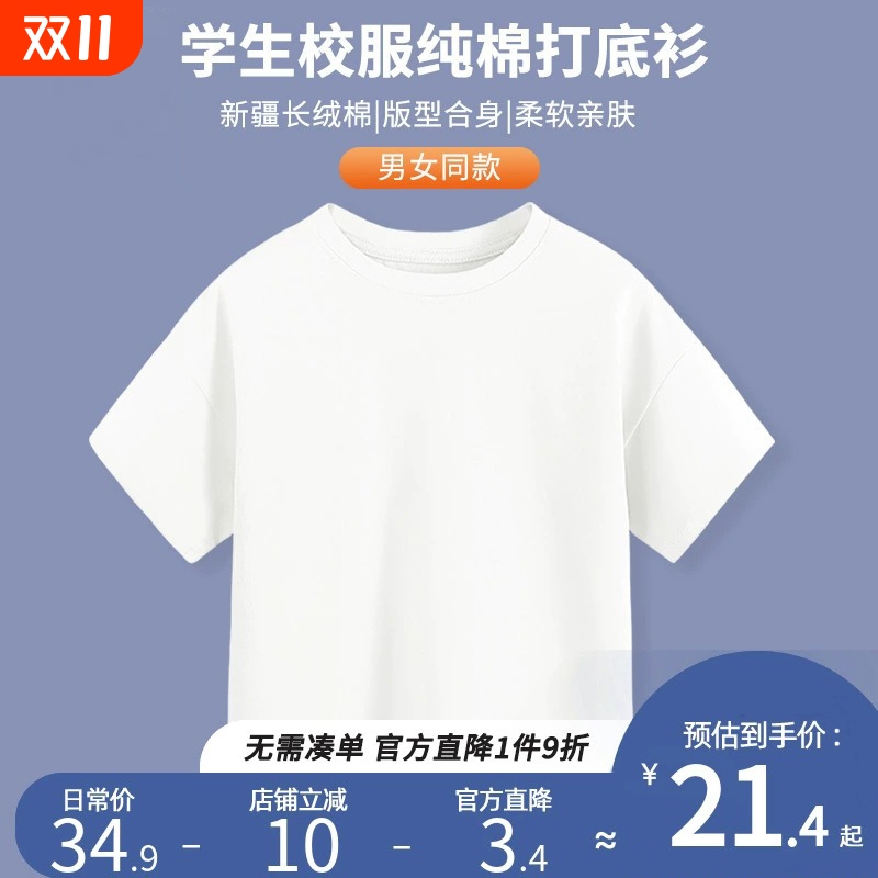 儿童白色t恤短袖纯棉纯白半袖纯色体恤男童女童白t童装学生男孩夏