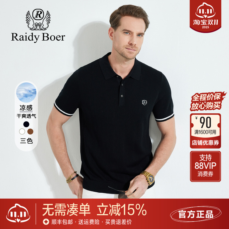 利郎男装桑蚕丝短袖T恤男士圆领灯笼格夏季薄款冰丝纯色体恤男潮