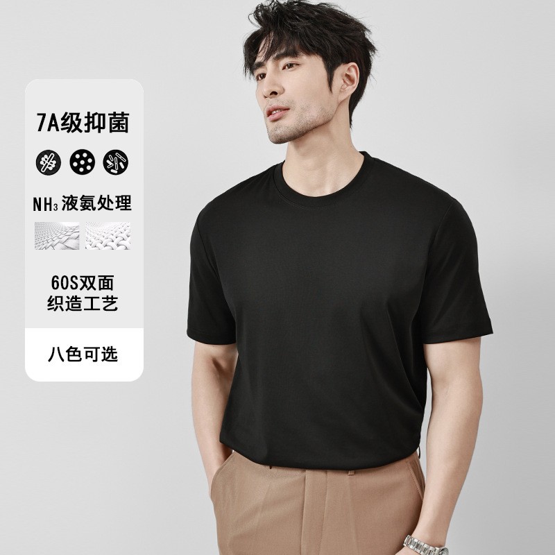 短袖圆领t恤男休闲液氨抗菌纯色体恤男士净版工作服半袖百搭AA55