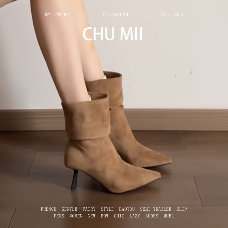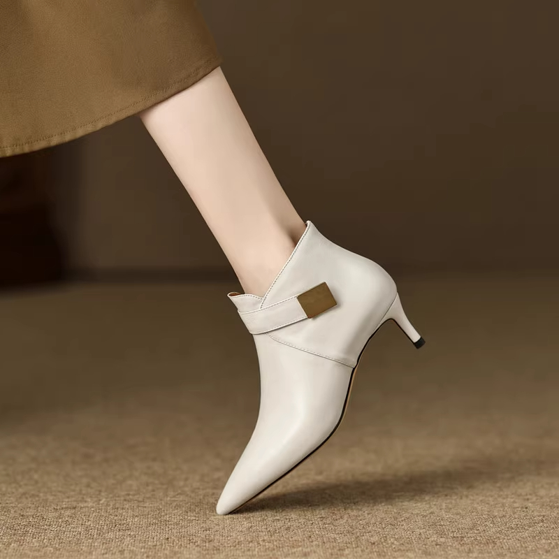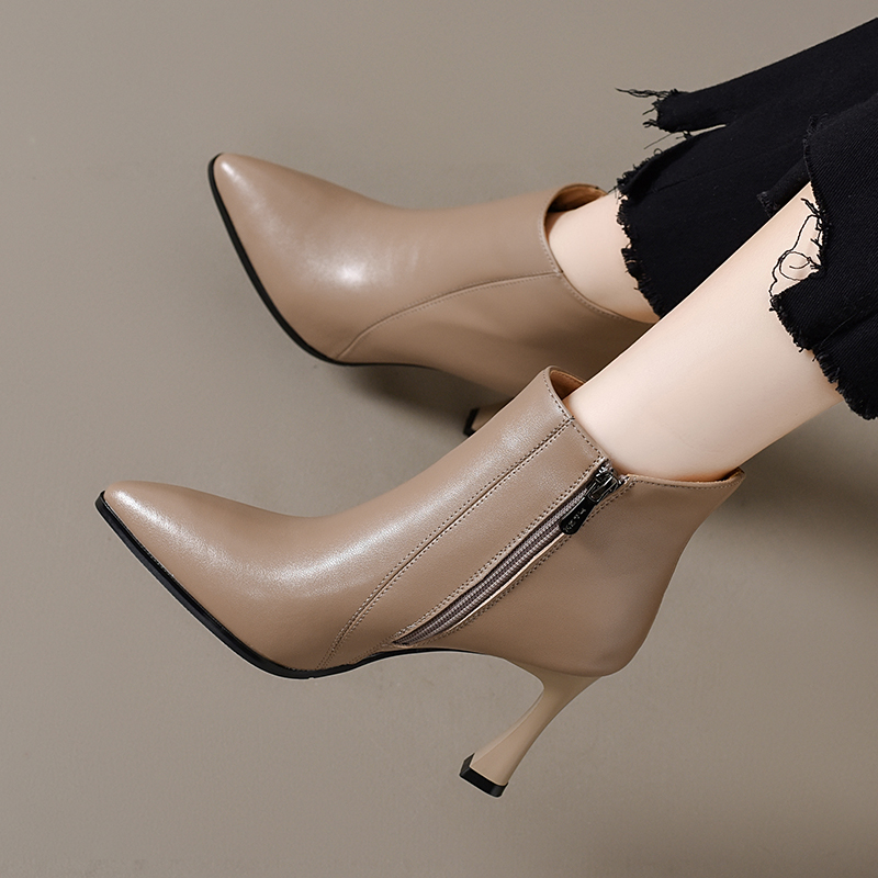2025年秋冬高跟马丁靴细跟尖头高跟鞋短靴女软皮中跟女靴裸靴加绒