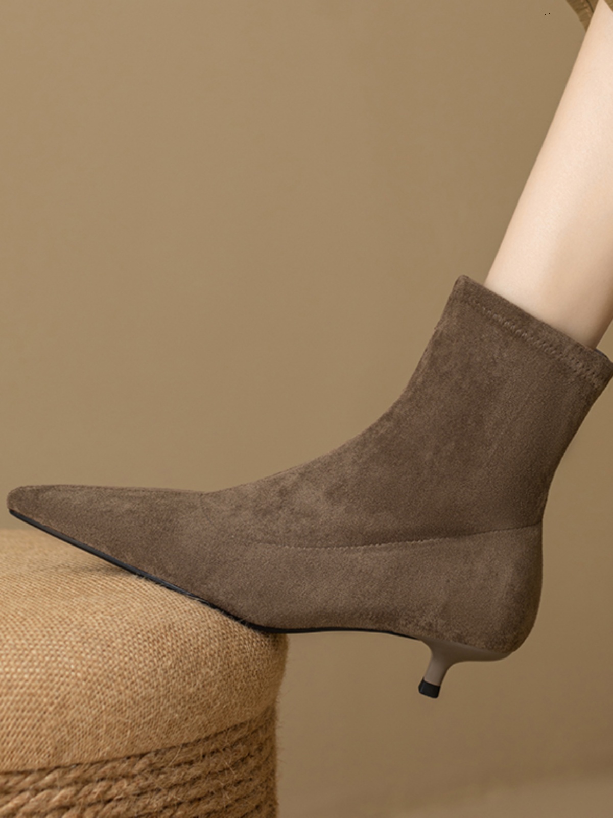 【丁允】法式新款尖头细跟弹力瘦瘦靴女时装高跟瘦腿短靴女马丁靴