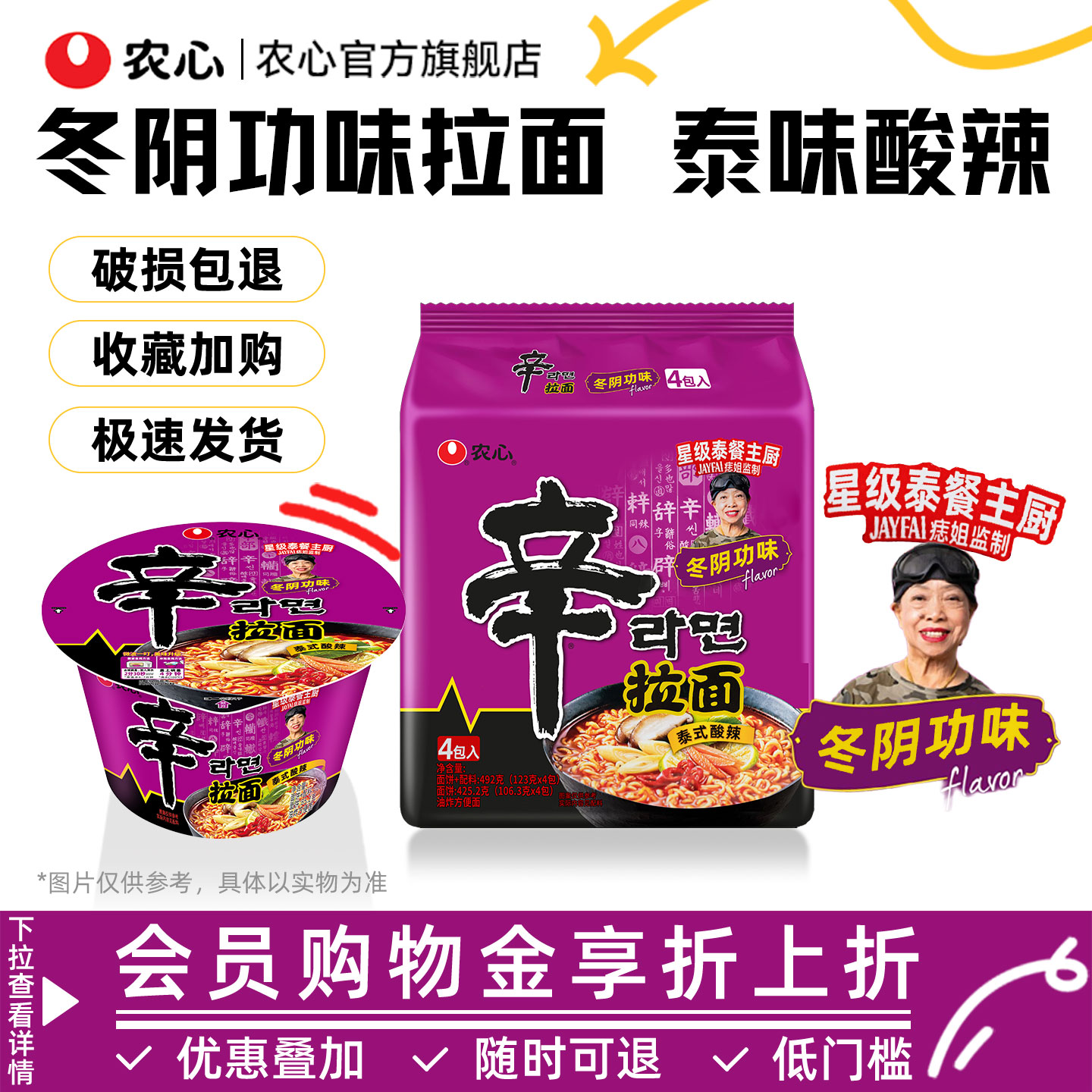 【新品】韩国农心辛拉面冬阴功味方便面泡面酸辣速食面官方旗舰店