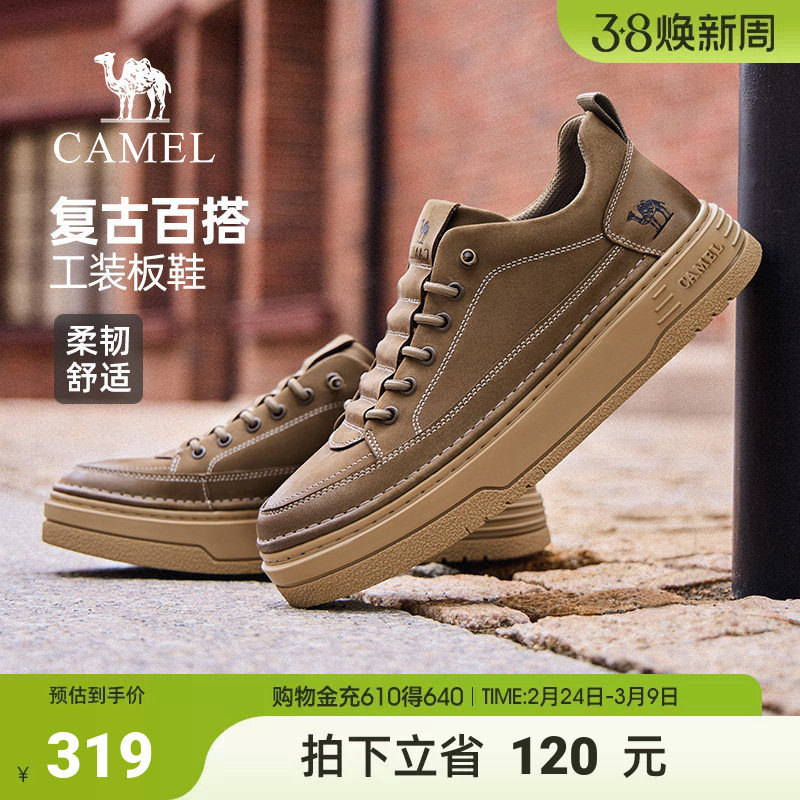 骆驼男鞋2025秋季新增高百搭板鞋抓地复古真皮工装鞋 可开发票