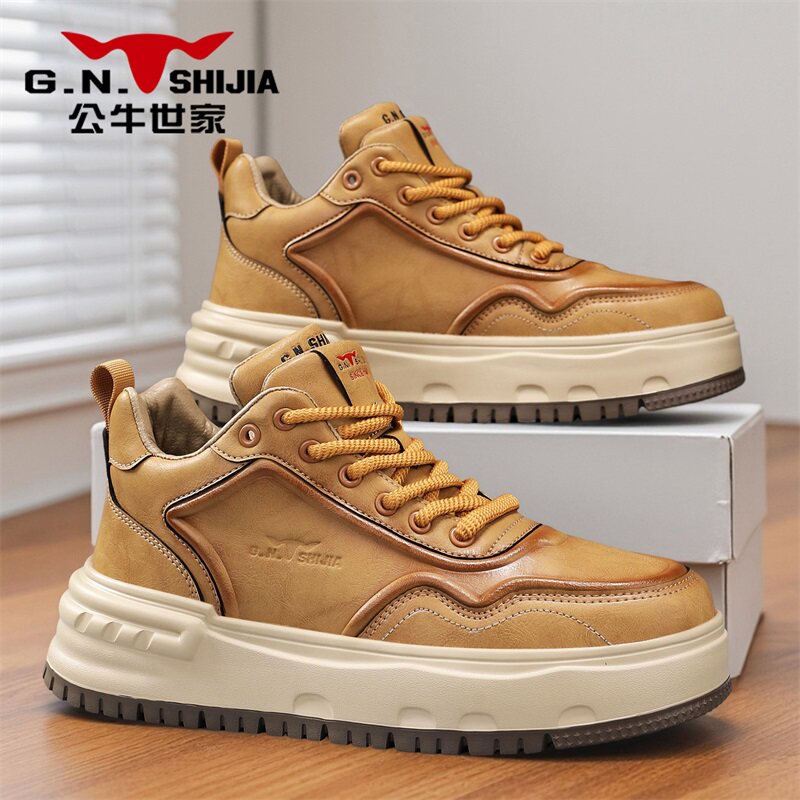 公牛世家男鞋冬季高帮鞋复古百搭休闲板鞋男士防滑增高真皮工装鞋