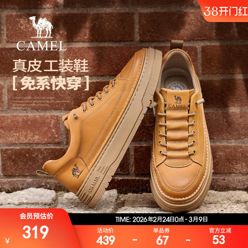 骆驼男鞋2026春季厚底休闲皮鞋男真皮工装鞋男低帮复古板鞋男