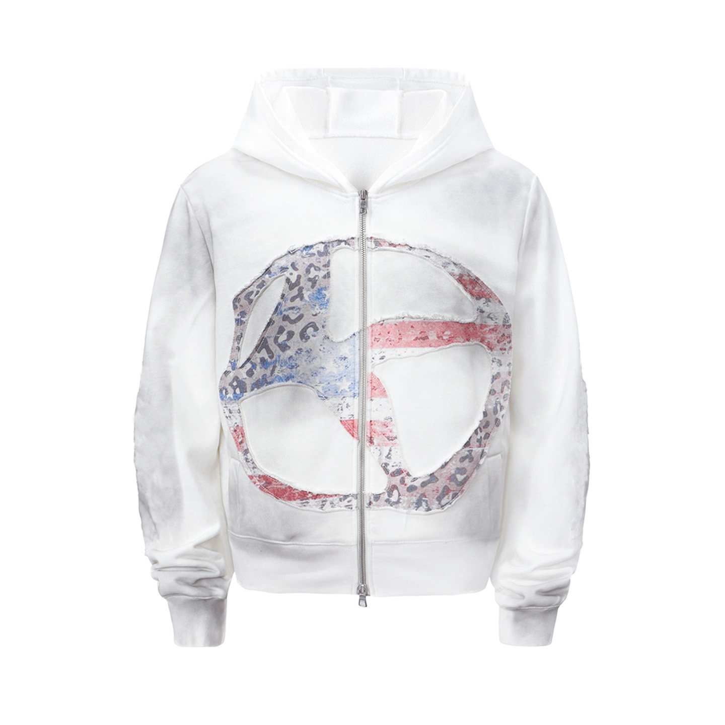4AM 原创小众水洗重磅440g白色做旧喷脏修身连帽拉链开衫卫衣男女