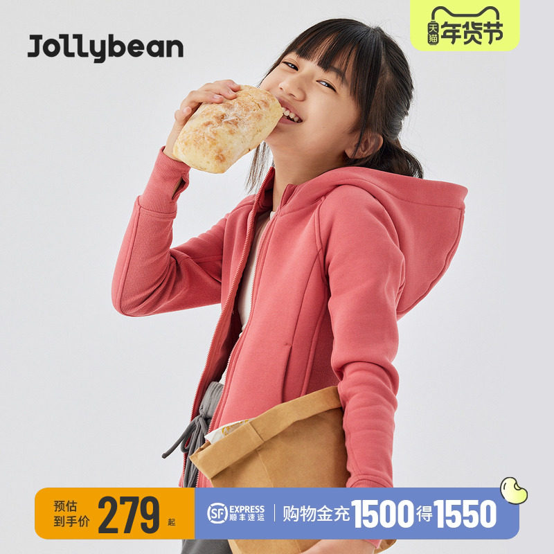 jollybean丨儿童连帽修身卫衣外套25秋冬男女童运动拉链开衫衣