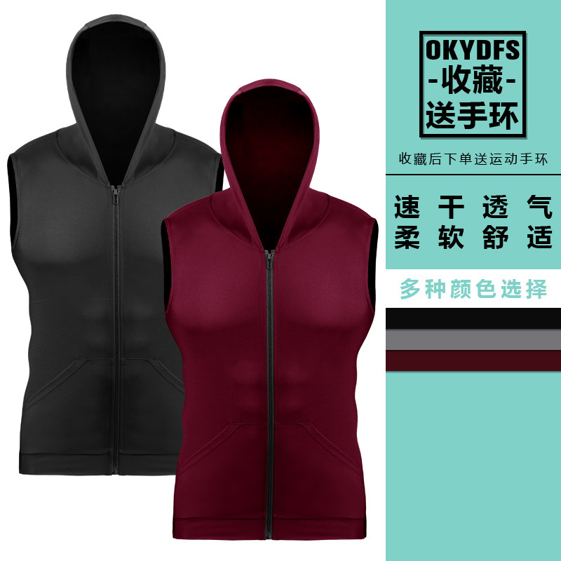 秋夏季连帽开衫外套男运动健身无袖背心马甲修身拉链卫衣坎肩马夹