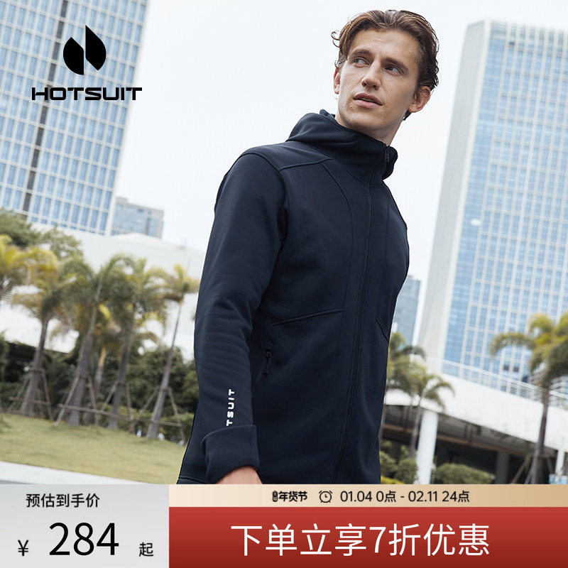 hotsuit后秀外套男士2026春季连帽加绒保暖开衫卫衣针织修身夹克