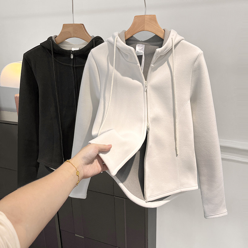 双面德绒拉链连帽卫衣男女秋冬新款韩系修身开衫外套保暖帽衫上衣