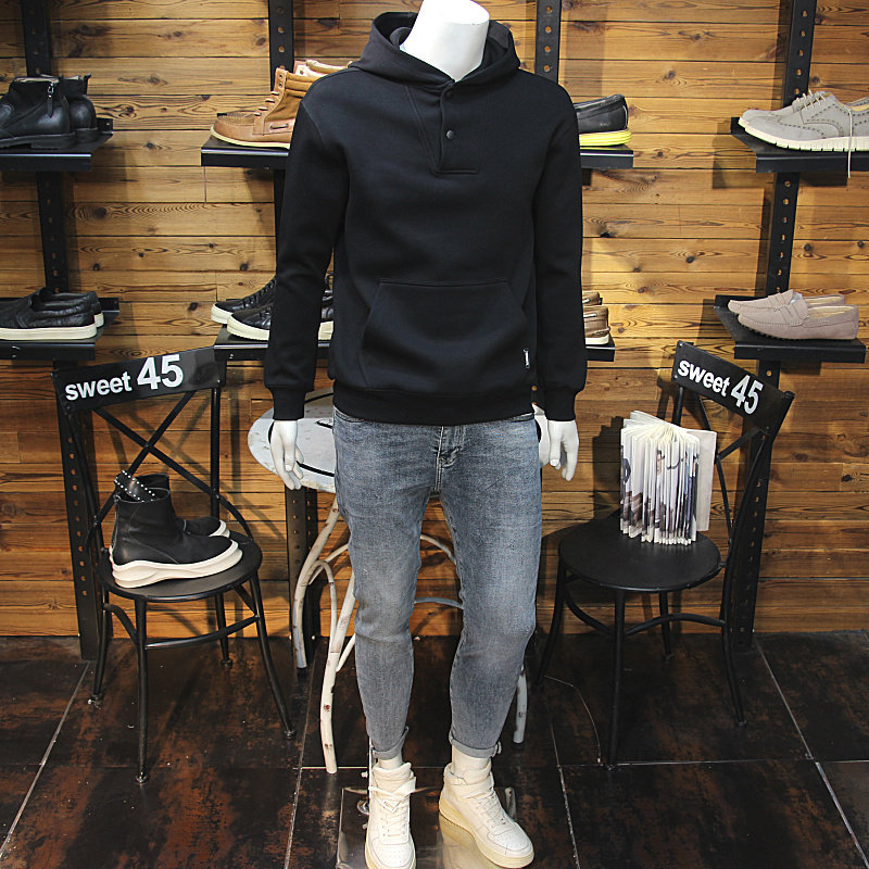 XS号连帽卫衣男韩版修身纯色打底衫矮小个子秋冬百搭上衣小码外套