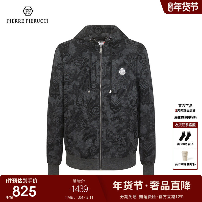 PP男装2023春季新款时尚修身灰色连帽开衫卫衣商务休闲舒适外套男