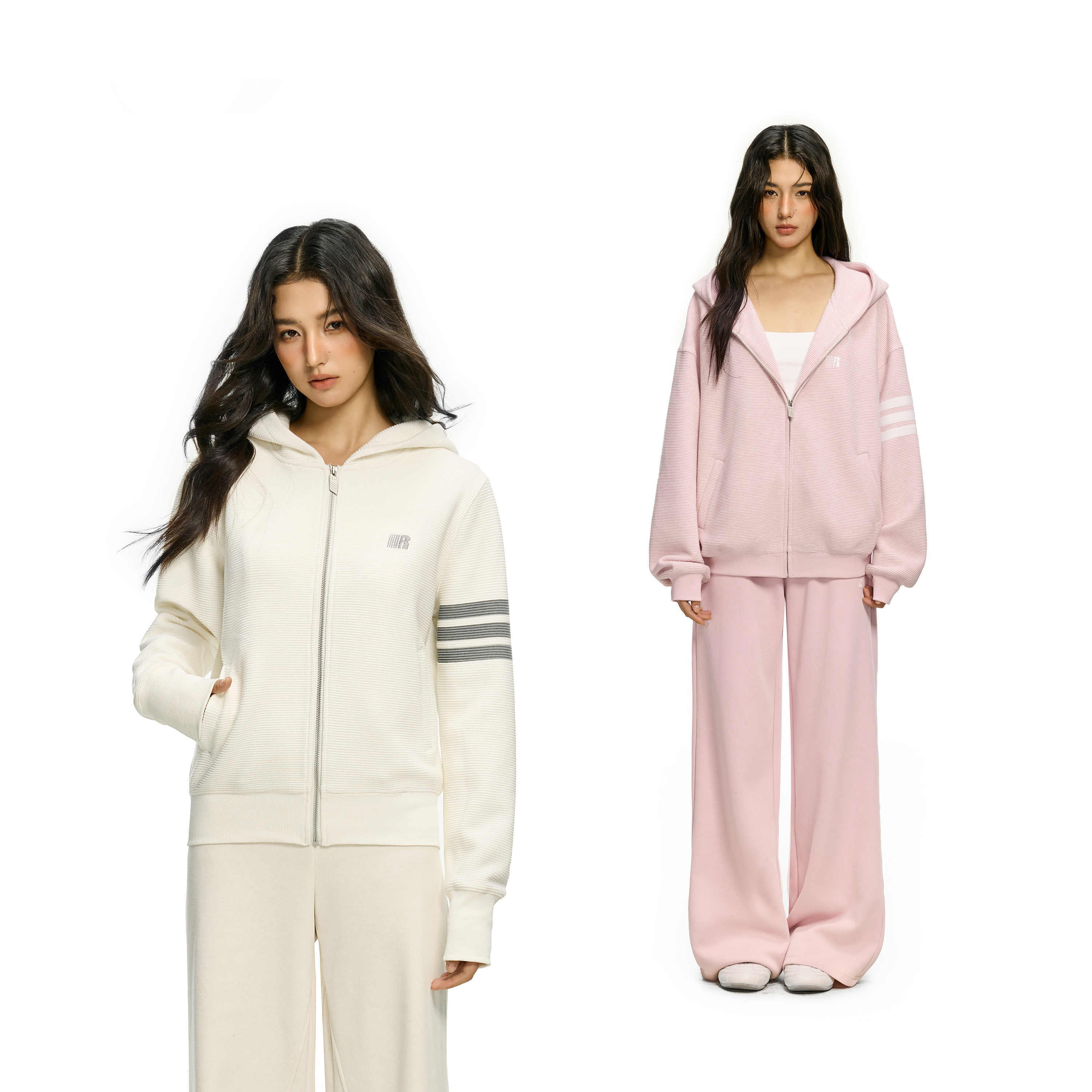 FDR官方店 华夫格连帽拉链卫衣男款春季2026新款修身开衫外套女