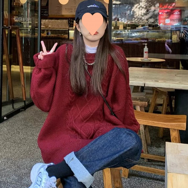 - 粗线毛衣宽松套头女韩