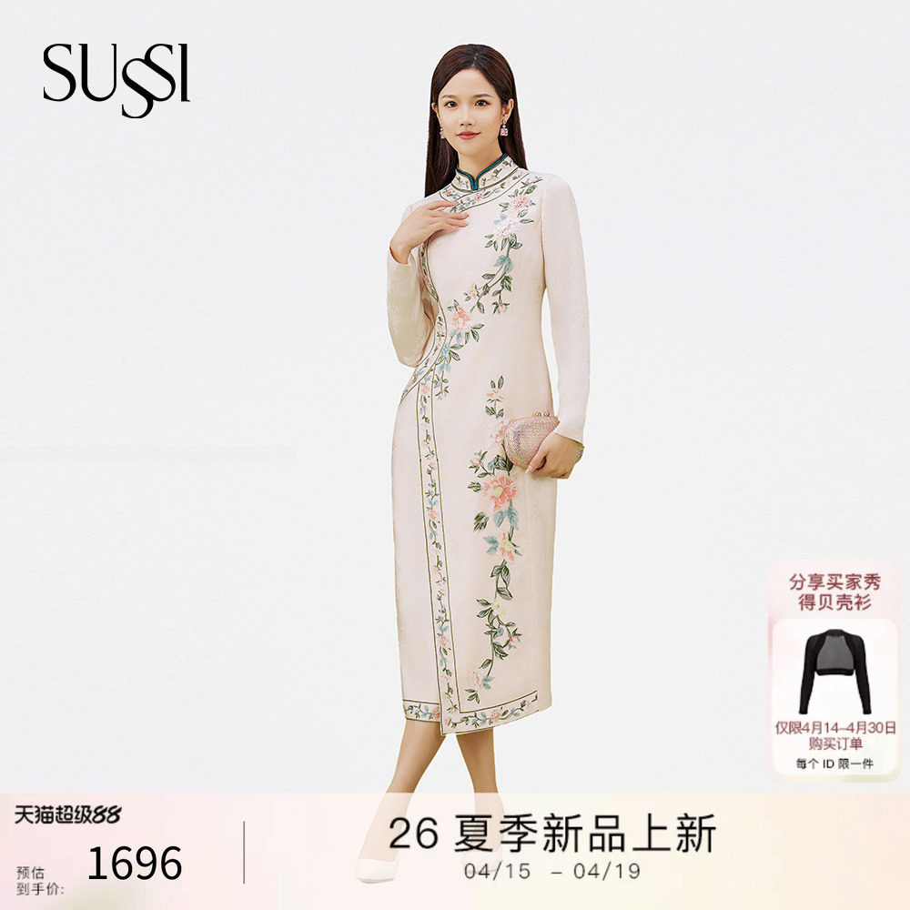 改良旗袍连衣裙2026新款女秋冬加厚高端修身喜婆婆婚宴装妈妈礼服