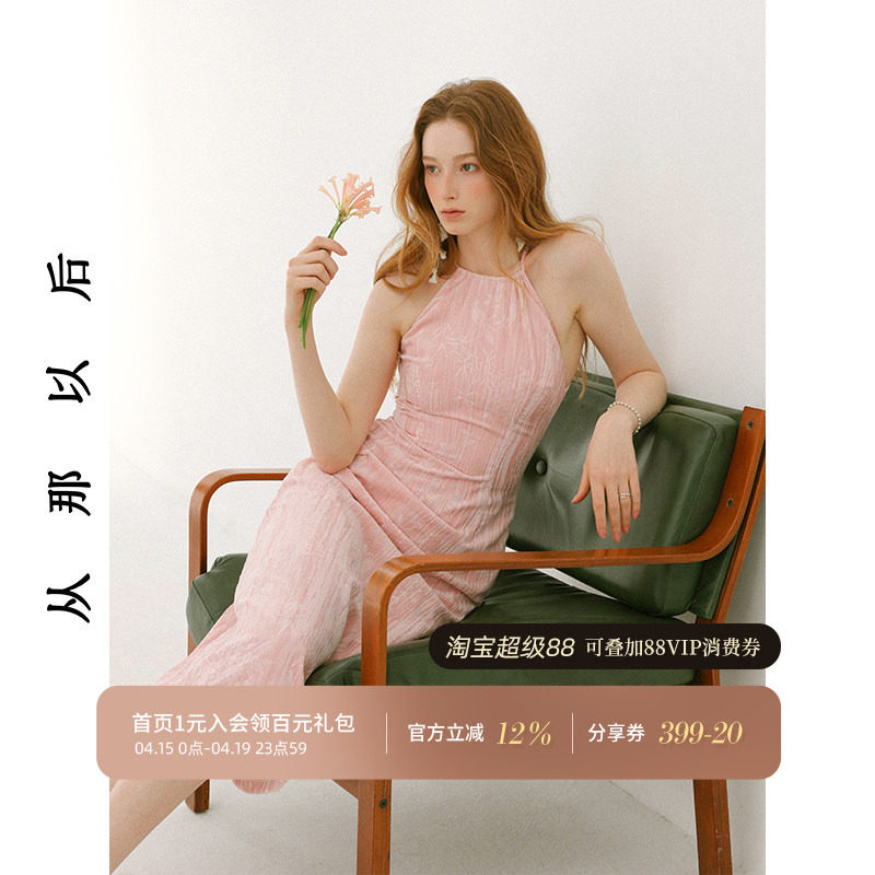 从那以后新中式连衣裙夏改良旗袍裙千金风穿搭粉色无袖裙子女秋冬