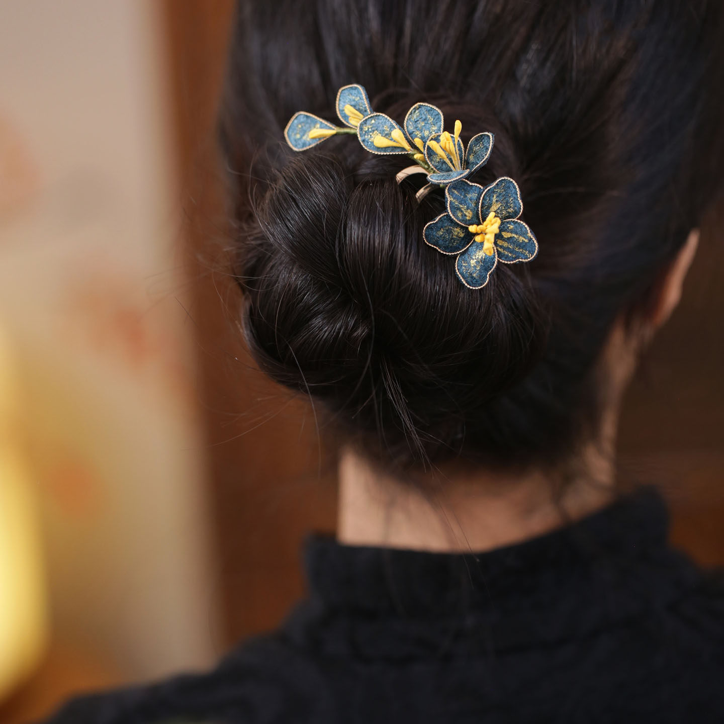 四齿插梳中式蓝色头饰后脑勺秋冬发簪女2026新款掐丝花朵旗袍簪子