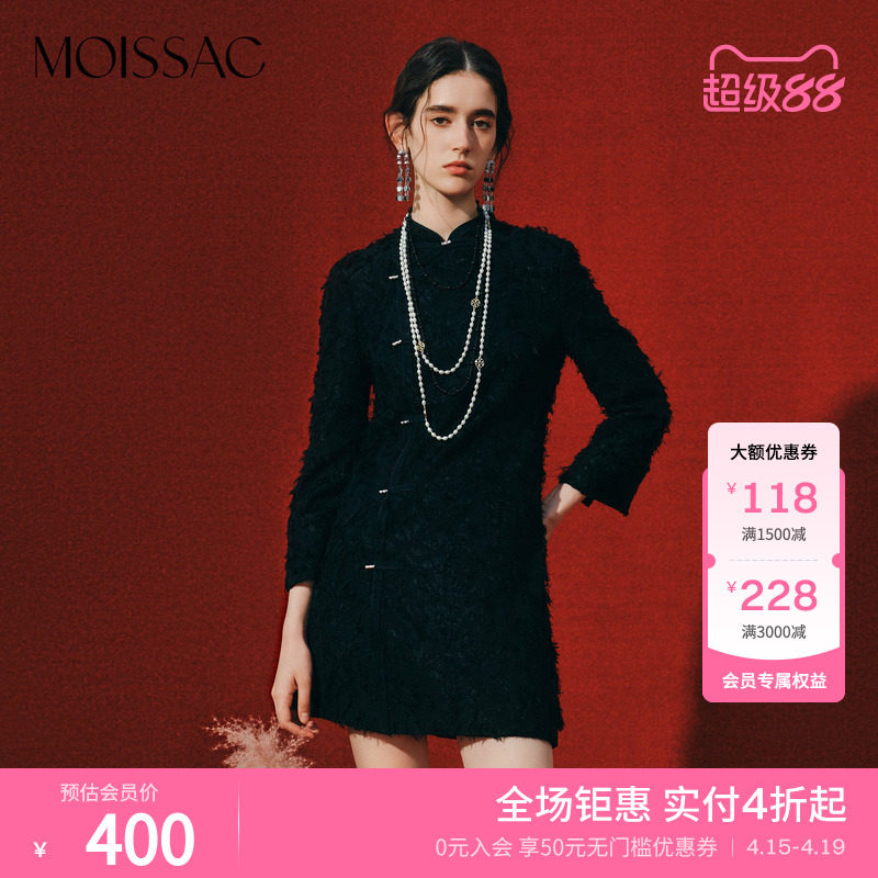 MOISSAC摩萨克冬立领流苏提花盘扣国风新中式旗袍连衣裙女