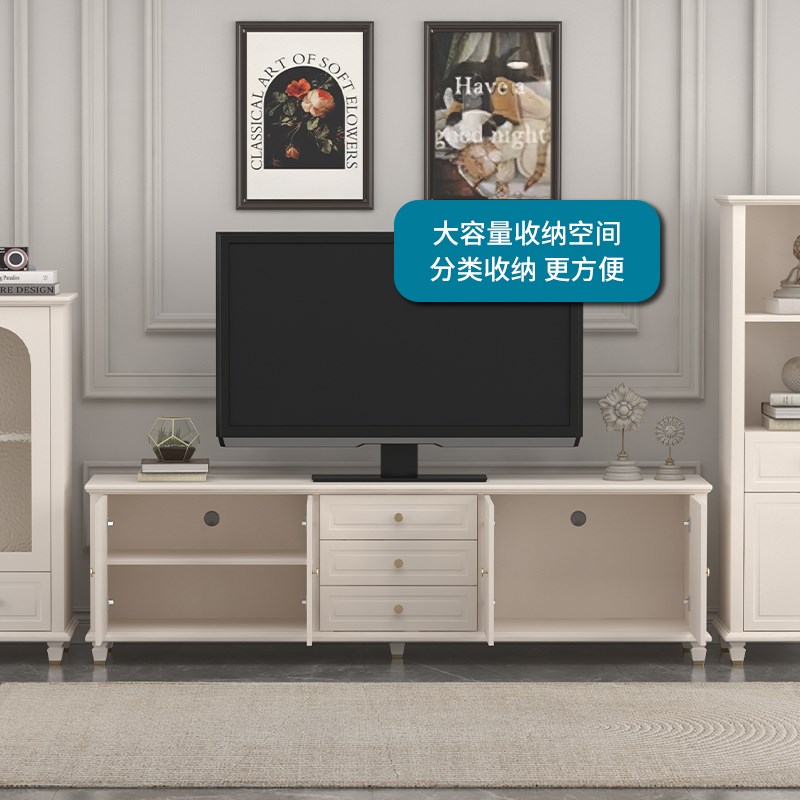 美式简约电视柜茶几组合客厅落地地柜小户型奶油白色收纳柜储物柜