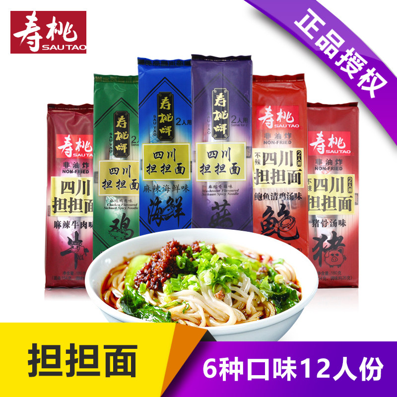 寿桃牌非油炸四川担担面鲍鱼清鸡面条挂面细面家庭煮面3口味180g