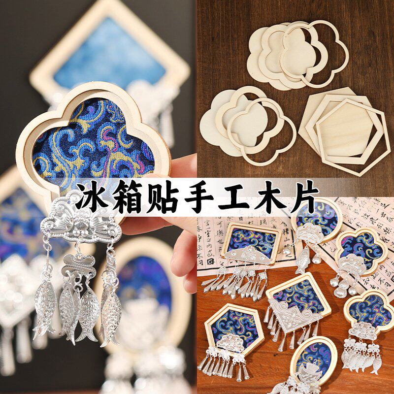 古风傣绣宋锦冰箱贴配件diy圆形画框装裱刺绣木片手工冰箱贴配件