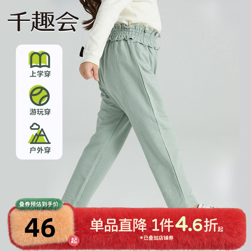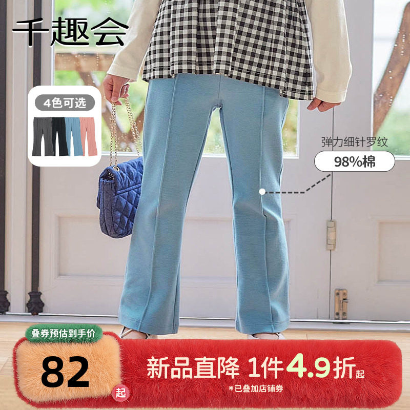 千趣会童装儿童秋装长裤时尚前腿细褶日系女童棉质小喇叭女宝裤子