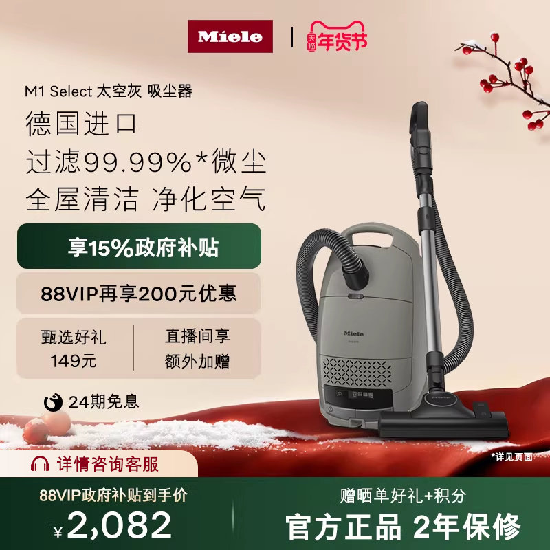 美诺Miele家用有线小型卧式吸尘器地毯宠物猫毛吸尘机M1太空灰