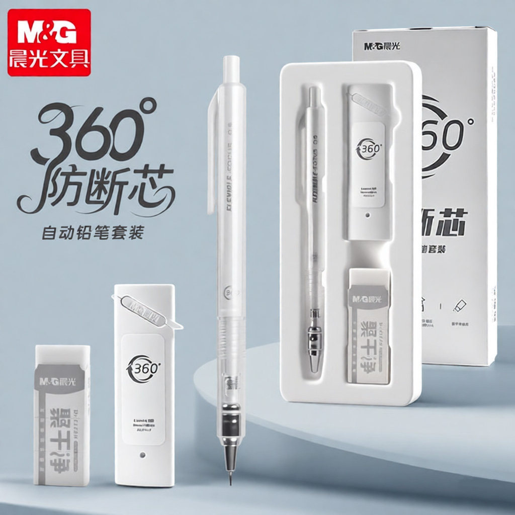 晨光360度防断芯自动铅笔学生专用自动笔0.5活动铅笔0.7橡皮高颜值礼盒素描笔绘画笔初中生专用铅笔套装文具