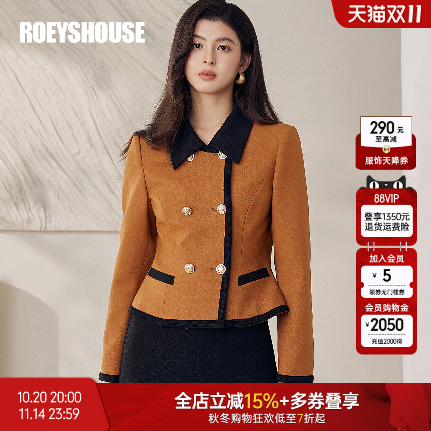 罗衣老钱风拼接双排扣短外套女冬季高级小香风收腰显瘦上衣13248