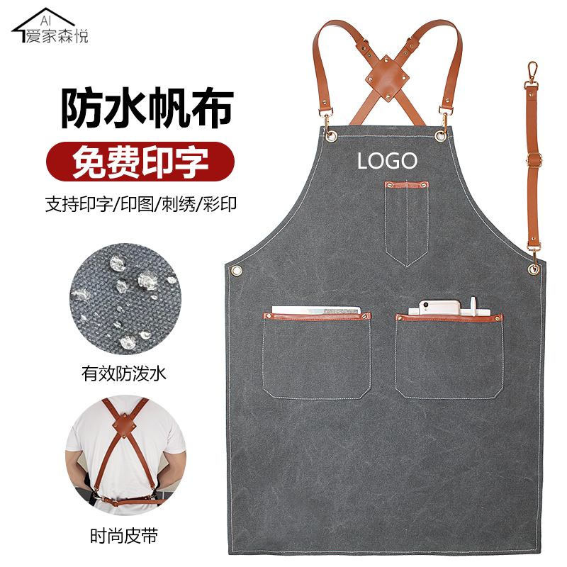 帆布日式防泼水围裙厨房餐饮咖啡厅理发师男女工作服定制logo印字