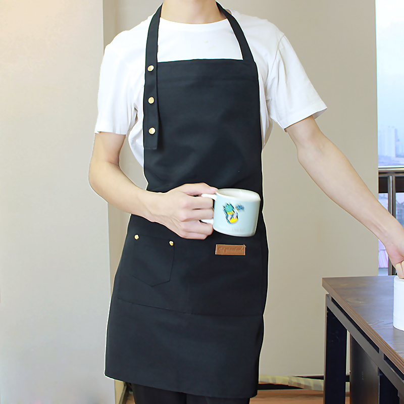 高级咖啡师围裙上班专用厨房餐饮男女时尚防水帆布工作服定制印字