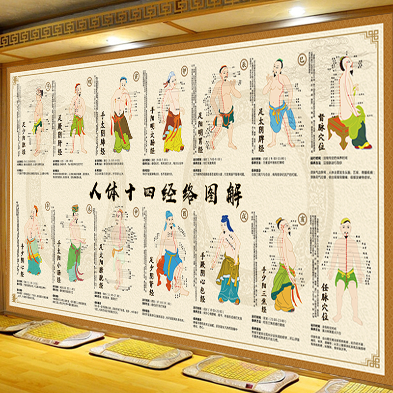 人体十四经络穴位图高清身体十二经络挂图中医养生馆装饰画壁纸hb