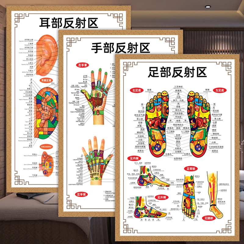 足部穴位图反射区挂图脚底按摩艾灸针灸足疗人体经络养生海报宣传