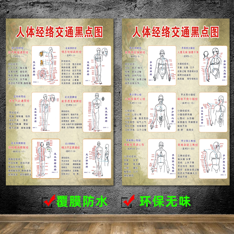 人体经络交通黑点图墙贴穴位常见症状科普挂图中医养生馆理疗海报