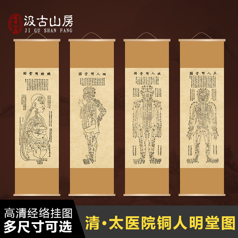 铜人明堂图仿古人体经络穴位挂图仿真复制养生馆装饰画中医院展示
