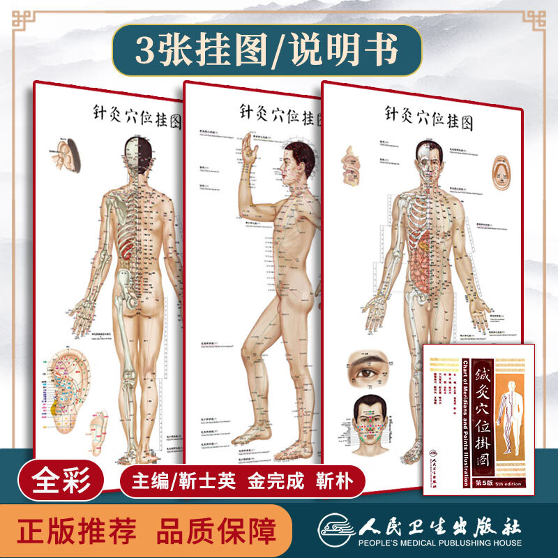 【1m*0.5m】3张 针灸穴位挂图第五5版 全彩图版 靳士英 金完成 靳朴 针灸穴位人体挂图 经络 穴位 中医学养生书籍 人民卫生出版社