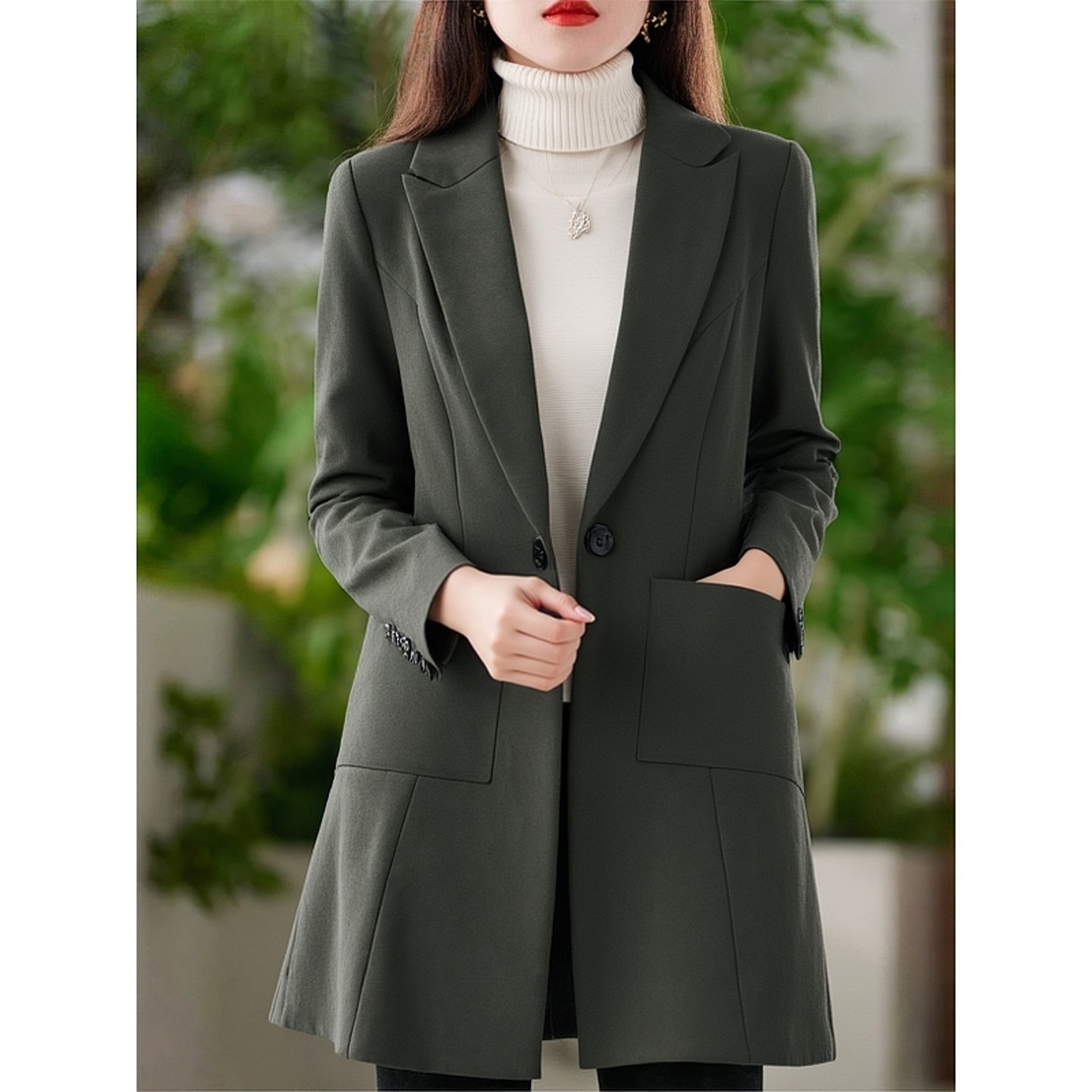 西装领灰色风衣外套女秋季新品欧美风宽松显瘦薄款中长款过膝大衣
