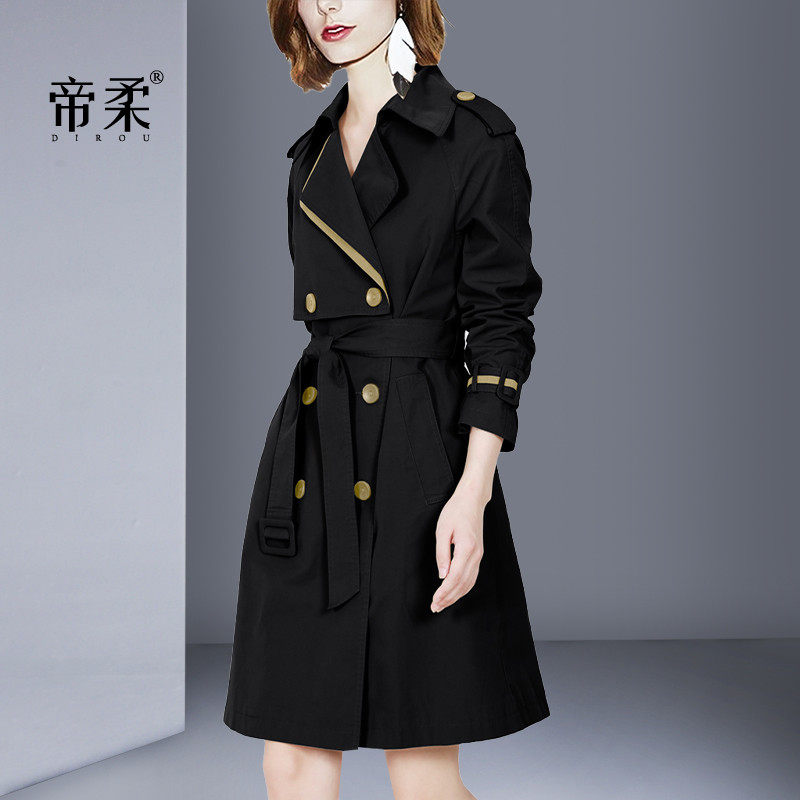 欧美流行时尚中长款风衣2025春秋新款女装修身收腰显瘦双排扣外套