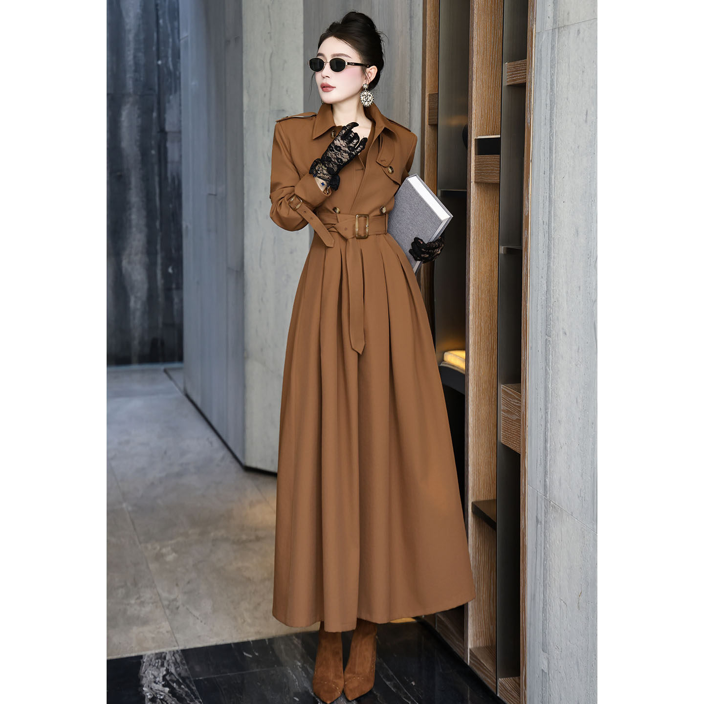 欧美时尚气质温柔风外套2025年秋季新品修身显瘦过膝风衣女中长款