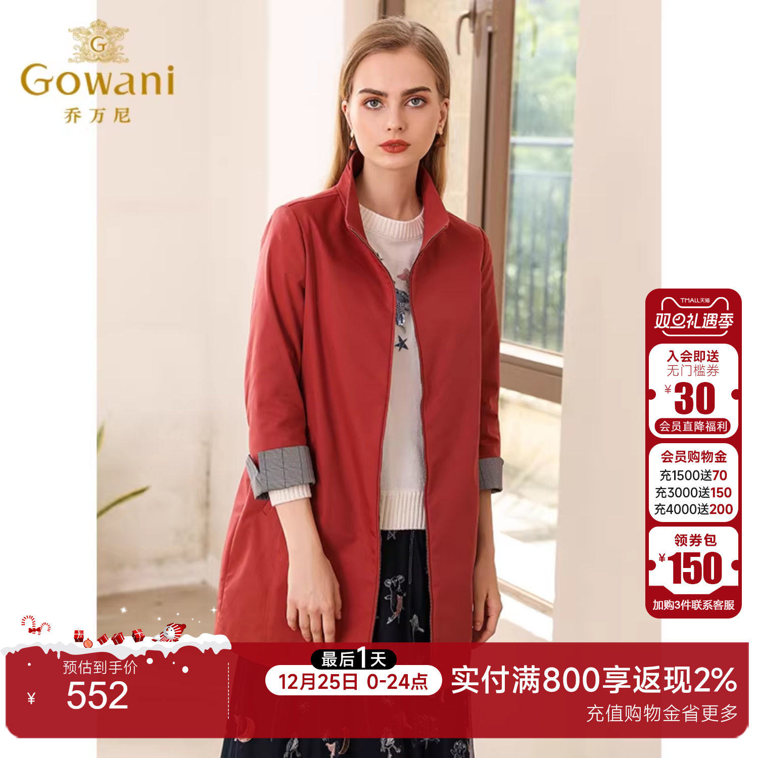 乔万尼商场秋装新款流行红色宽松直筒气质欧美风衣外套女士中长款
