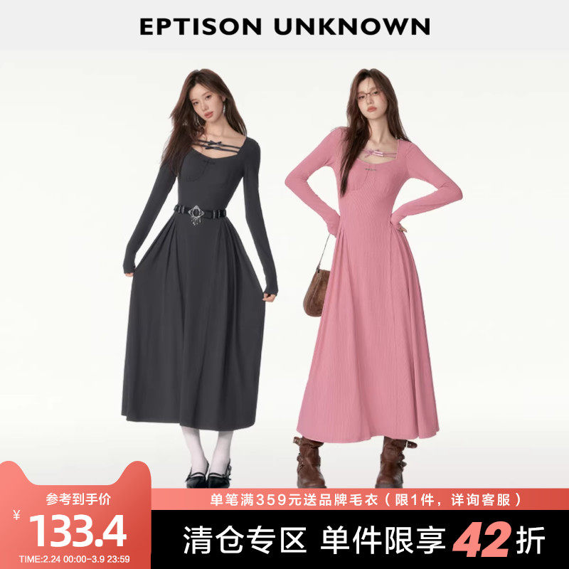 EPTISON长袖连衣裙女2025秋季新款蝴蝶结收腰a字甜美超好看长裙子