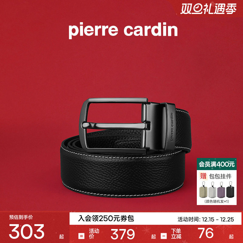 皮尔卡丹皮带男真皮商务休闲针扣男士腰带2025新款头层牛皮裤带男