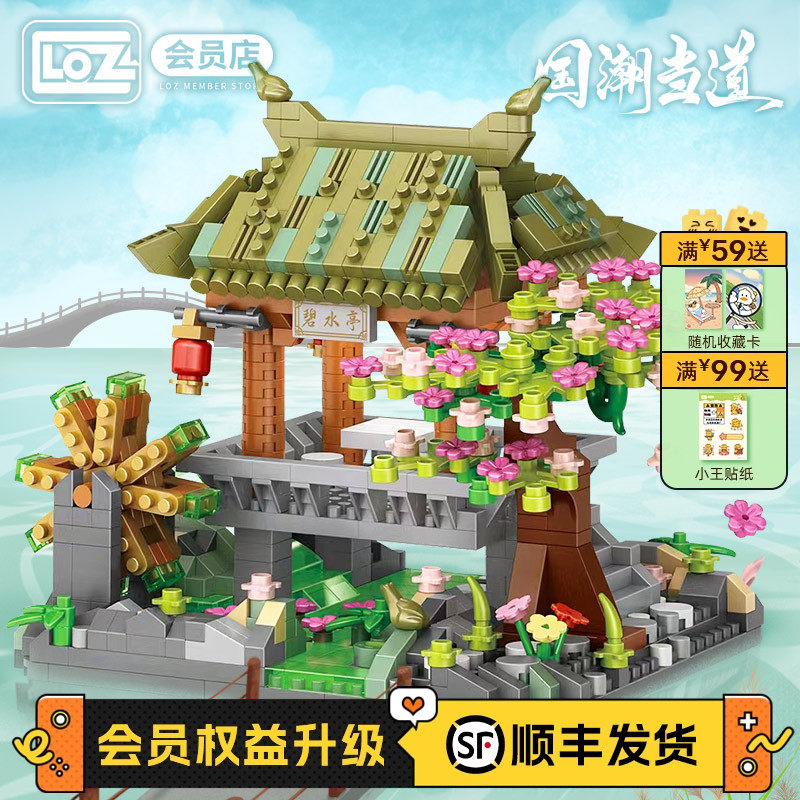 LOZ俐智碧水亭 中国风建筑物国潮微型小颗粒拼装积木玩具模型古风