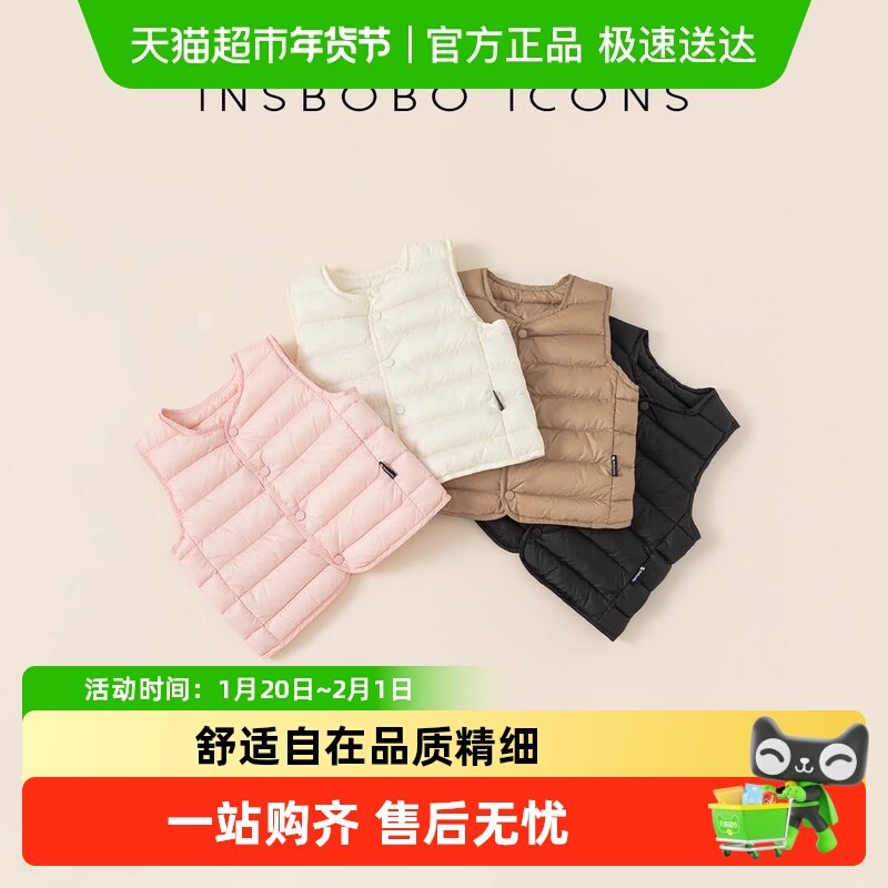 INSbobo儿童羽绒服轻薄女童马甲秋冬款男童背心坎肩白鸭绒内胆