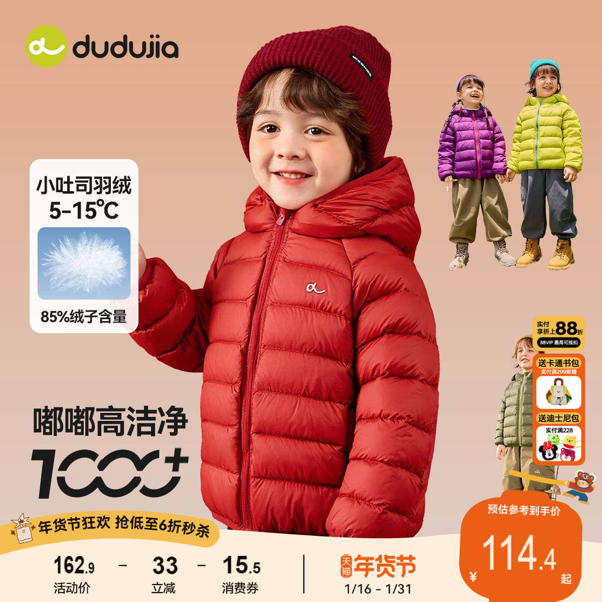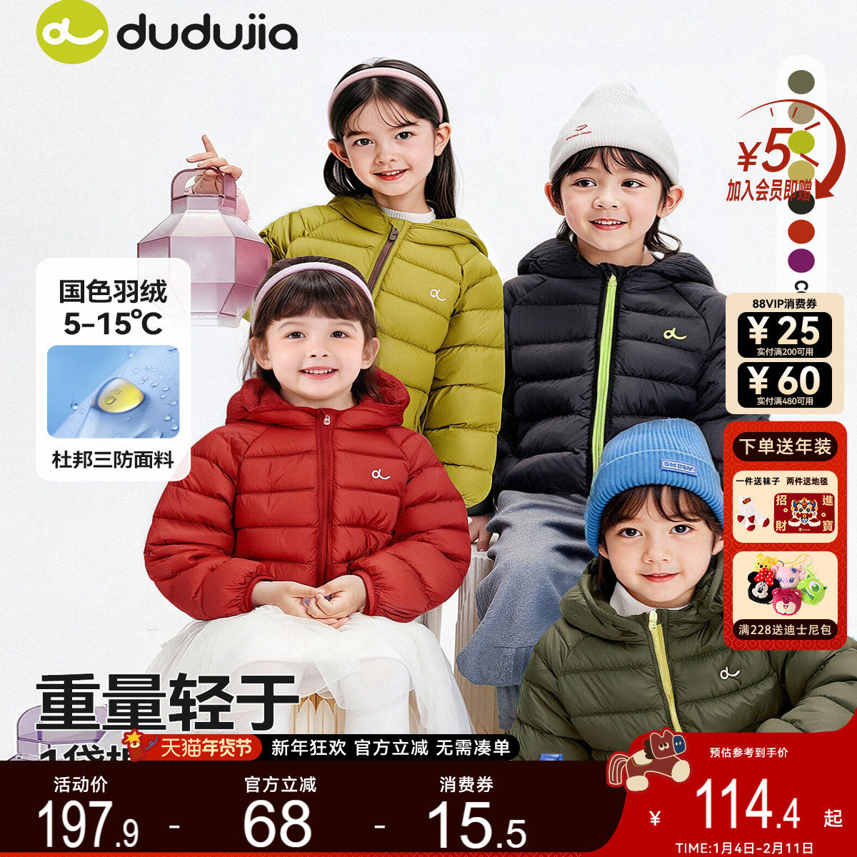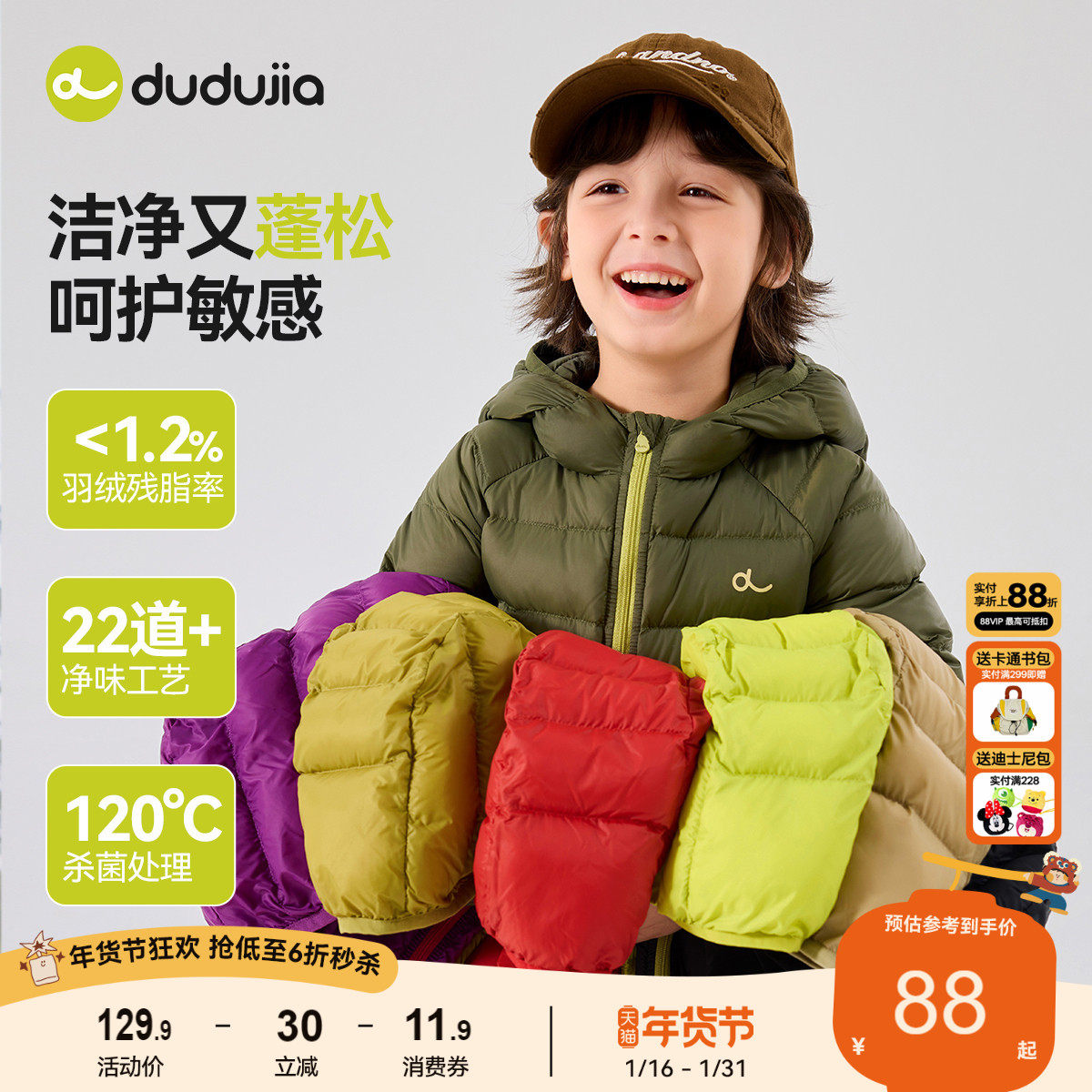dudujia[杜邦三防]儿童羽绒服冬款男童外套加厚女童外衣轻薄宝宝
