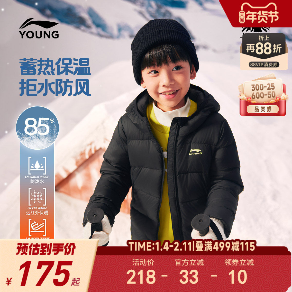 李宁小童轻薄羽绒服防泼水外套内胆2025新款秋冬款男童装宝宝冬装