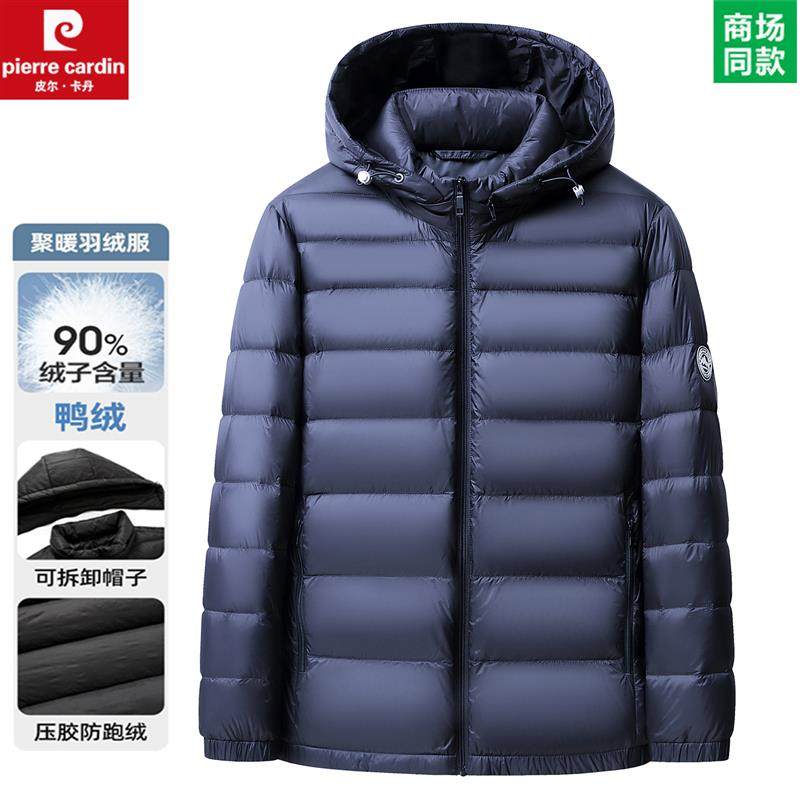 皮尔卡丹高端秋冬款轻薄羽绒服男女同款连帽可卸保暖90%鸭绒外套