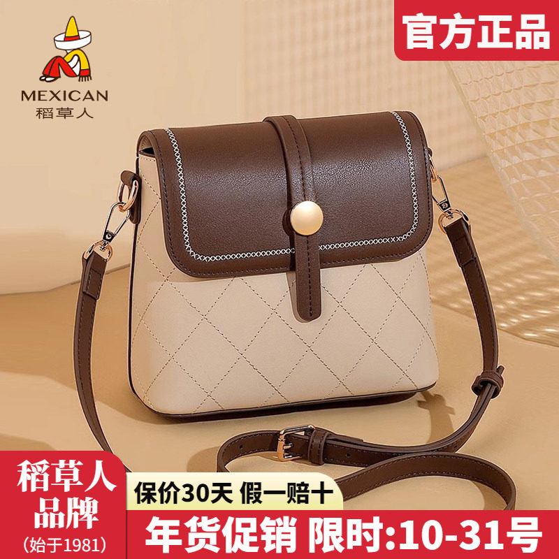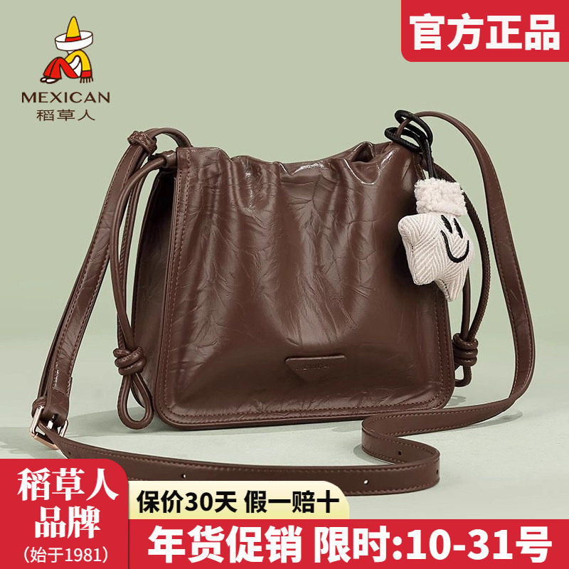 稻草人包包女包2025新款时尚单肩包复古水桶包通勤百搭斜挎包正品