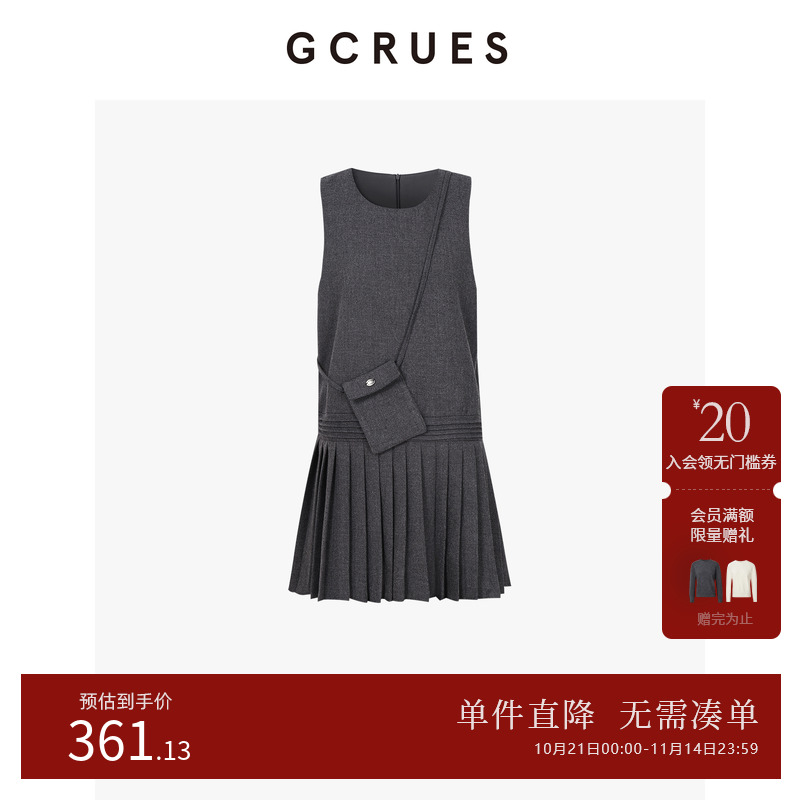 GCRUES格雷系灰色无袖背心连衣裙女设计感压褶毛呢裙G09D08E0162Z